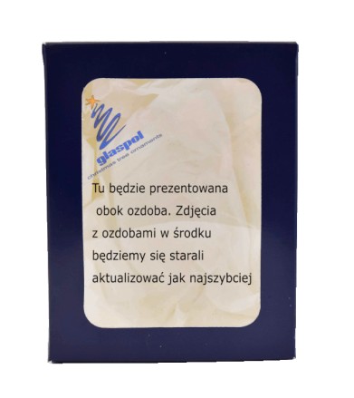 Ozdoba została wykonana ze szkła. Zapakowana jest w pudełko z okienkiem, dzięki czemu idealnie nadaje się na prezent. Uwaga!!! Ozdoby choinkowe produkowane przez Glaspol wykonane są ze szkła. To nie zabawki i nie mogą być używane do zabawy przez dzieci. To produkt dekoracyjny, a kontakt i użytkowanie przez dzieci wyłącznie pod nadzorem i na odpowiedzialność osoby dorosłej.